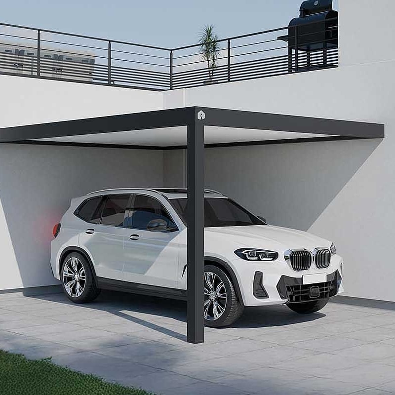 - Le carport autoporté, totalement indépendant, offre une grande liberté d’implantation et s’adapte parfaitement aux grands espaces, avec la possibilité d’abriter plusieurs véhicules.