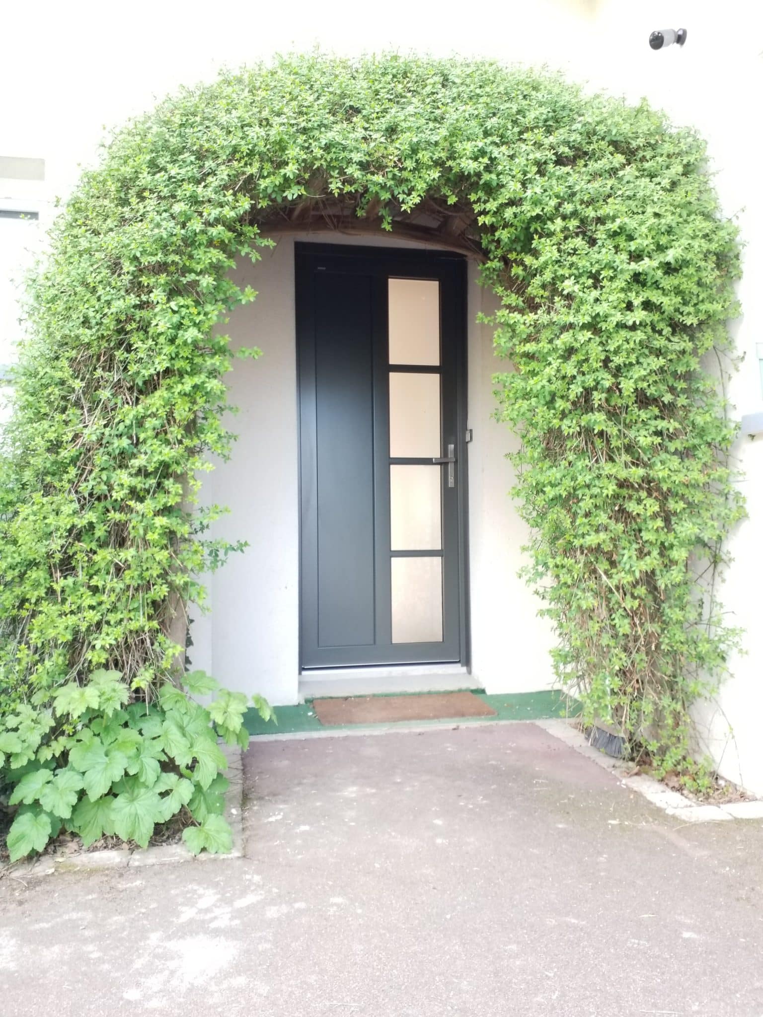 Nous avons donc installé une porte d’entrée en PVC/alu avec :