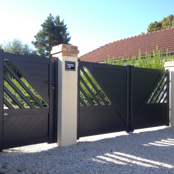 - Le portail battant, solution traditionnelle et intemporelle, s’ouvre vers l’intérieur ou l’extérieur selon la configuration de votre terrain et convient parfaitement aux entrées dégagées, avec un large choix de designs et de finitions, tout en étant compatible avec une motorisation.